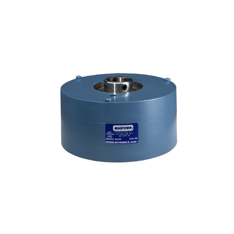 MAGPOWR B-7V and B-20V Vertical Magnetic Particle BrakesRead MoreUnlike other magnetic particle brakes, a horizontal axis is not required for shafts utilizing MAGPOWR’s B-7V & B-20V Vertical Magnetic Particle Brakes, thanks in particular to the unit’s disk-shaped rotor. Other brakes sport cylindrical designs, requiring a horizontal shaft axis. The B-7V & B-20V operate with the axis vertical, horizontal, or at any other required angle—the space between the rotor and the two sides is filled with magnetic particles, so the unit can be operated in any orientation. MAGPOWR’s B-7V & B-20V Vertical Magnetic Particle brakes, made of rugged cast iron for long life, are easy to install and have minimal moving parts, requiring very little installation and calibration. These brakes assist in smooth, repeatable torque that is proportional to current, and applications include tensioning of film rolls on vertical shafts, packaging machines and machine tools.