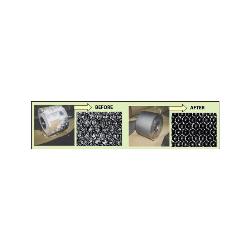 The Anilox Roll Cleaner – CeramClean II™ – will effectively & efficiently remove dried ink from the engraving without damaging the cell structure on ceramic and chrome cylinders. It will remove Water, UV and most Solvent based inks and in most instances will remove those tough stains found on the roll face.